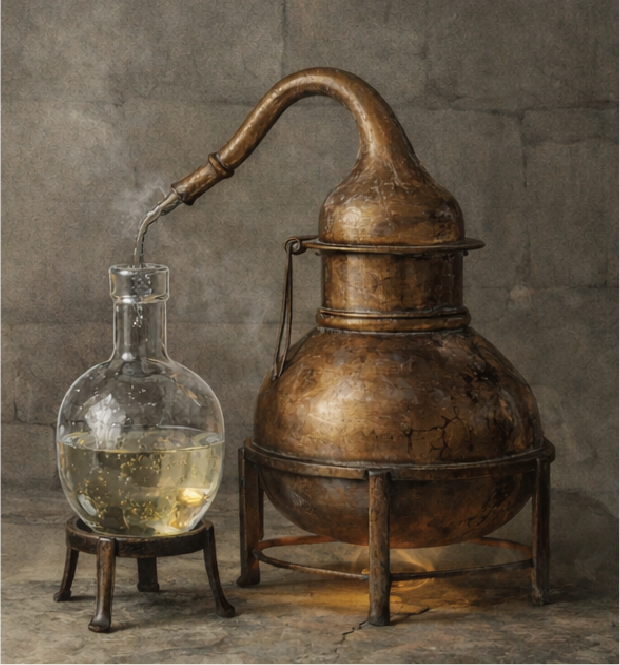 到了中世紀,煉金術士的桌上出現了一個細頸、弧腹、能導出蒸氣的奇特器具「蒸餾器(alembic)」。從這一刻起,香氣的命運開始改寫。
